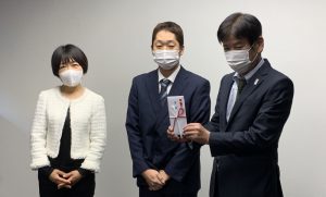 集められた募金は、高知県が実施している「新型コロナウイルス感染症対策助け合い寄附金」へ全額拠出することとし、贈呈にあたって濱口副委員長(青年委員会)と太田副委員長(女性委員会)は、「コロナ禍により制約があった中で、それぞれの職場や個々の人的ネットワークを活かして呼びかけました。金額こそ少ないが、医療現場等の最前線で奮闘する方々への感謝の気持ちがたくさん詰まった募金です。有意義に活用いただけることを願っています」とのコメントを付して副知事に手渡しました。