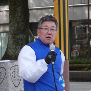 街頭に立った池澤会長は、「今の物価上昇を超える賃上げで生活を守るとともに、分厚い中間層を復活させて、経済を好循環させていこう。そして、賃上げの流れを地域別最低賃金の引上げに繋げながら、すべての働く者の“底上げ、底支え”を一緒にめざしていこう」と市民に呼び掛けた。