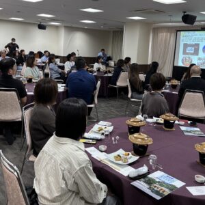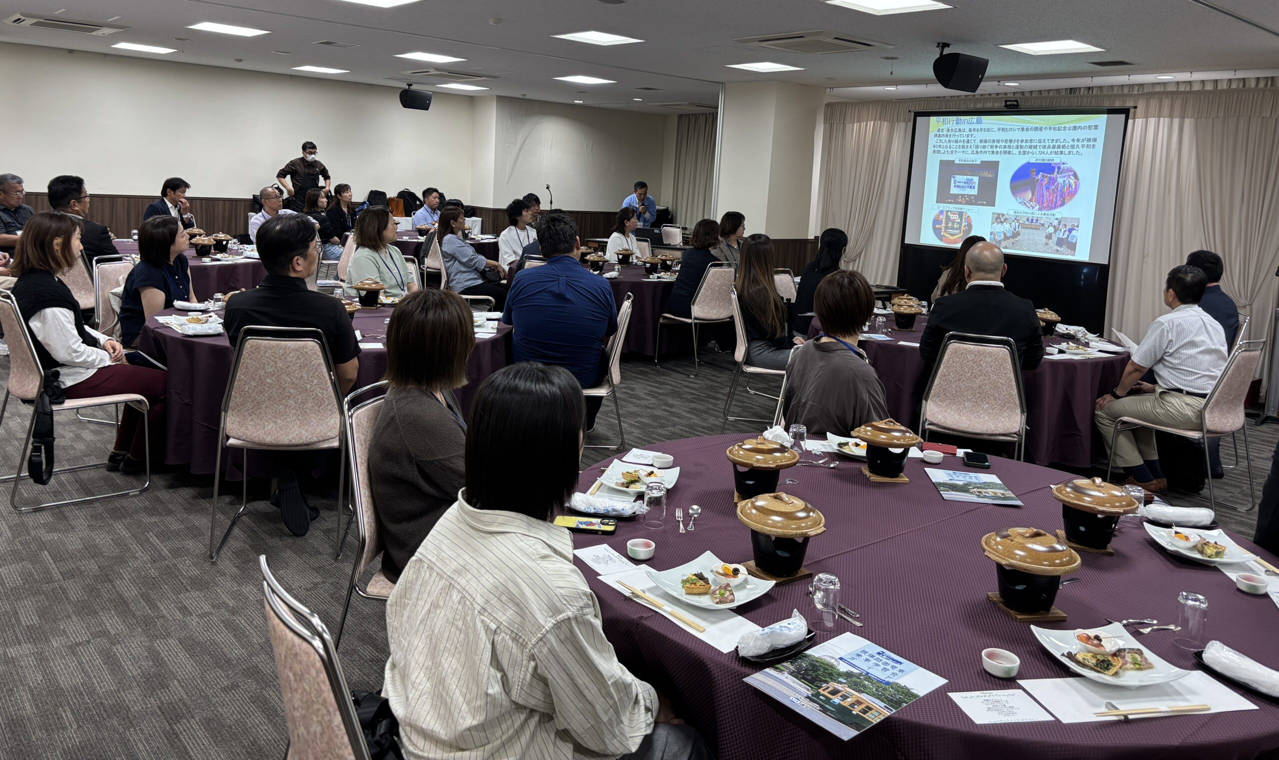 夕方には、連合広島青年・女性委員会(事務局含む)10名の皆さんとの交流会を行った。交流会では、連合広島石原副事務局長から、連合広島の青年・女性委員会の「平和運動の取り組み」について報告を受けた後、各テーブルに分かれて意見交換・交流会を行った。