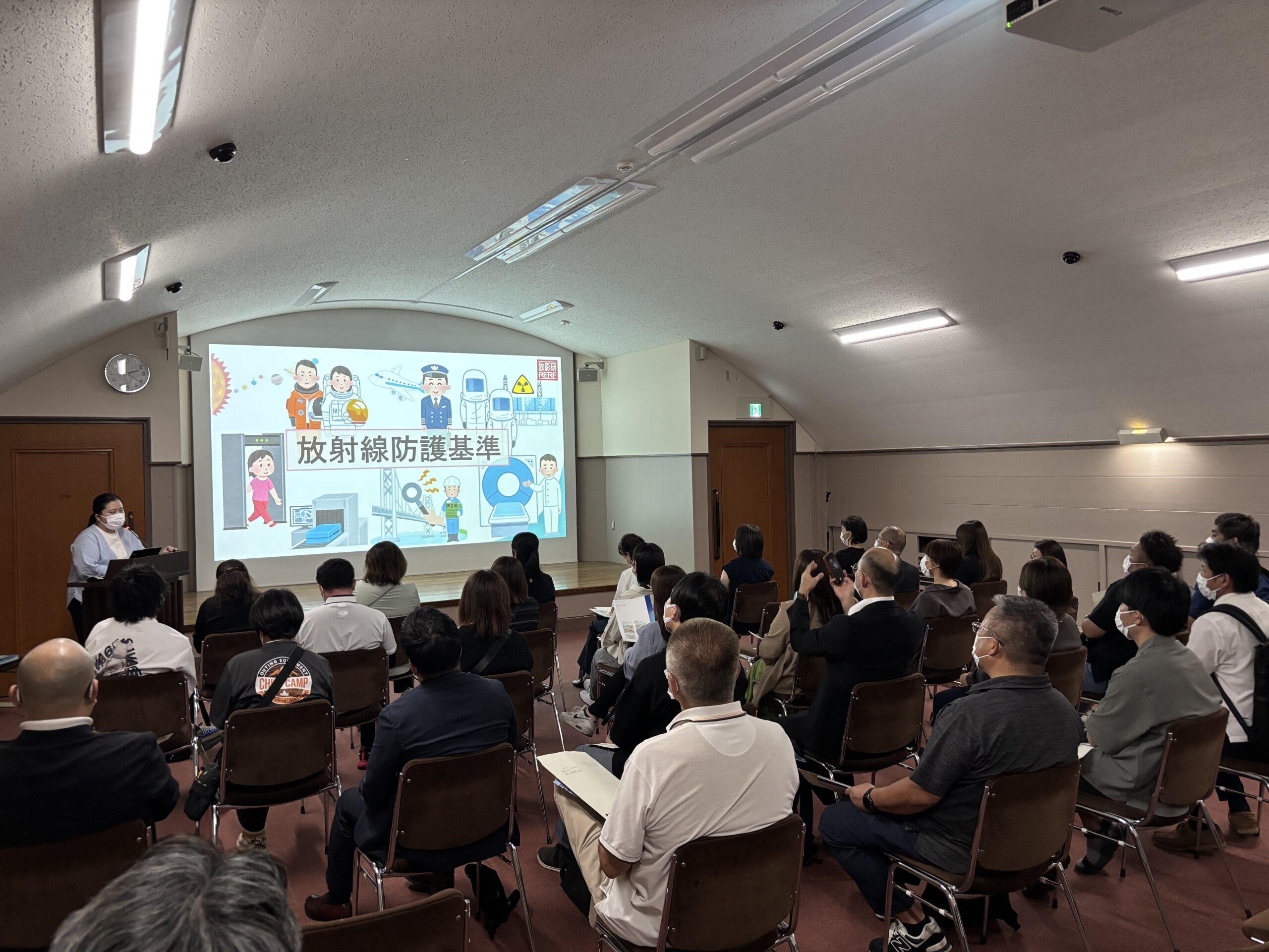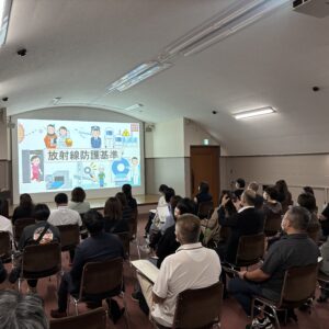講師からは、「放影研の研究結果は、被爆者の方々の健康だけでなく、爆心地の特定や、放射線の人体に対する作用により、現在の医療や放射線の安全基準など、さまざまな業務に関連することにも活かされている」ことの説明があり、基礎研究の重要性も学んだ。