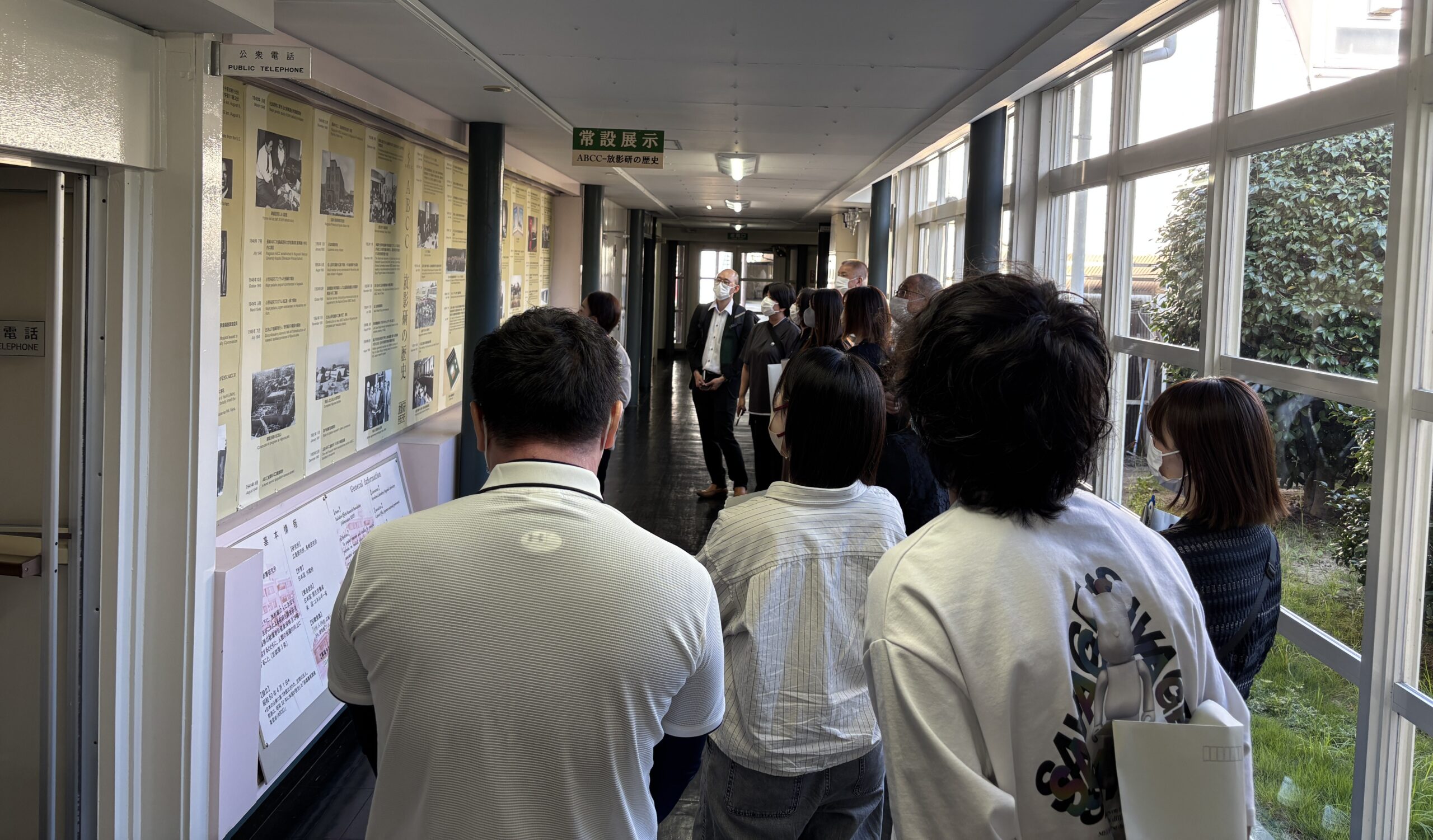 1日目は、車内学習をしたのち放射線影響研究所(ABCC)※見学を行った。放影研では、まず、「設立されてから現在に至るまでの過程」、「調査の概要、放射線と健康の科学について」などの講義を受けた。その後、施設内の見学を行った。