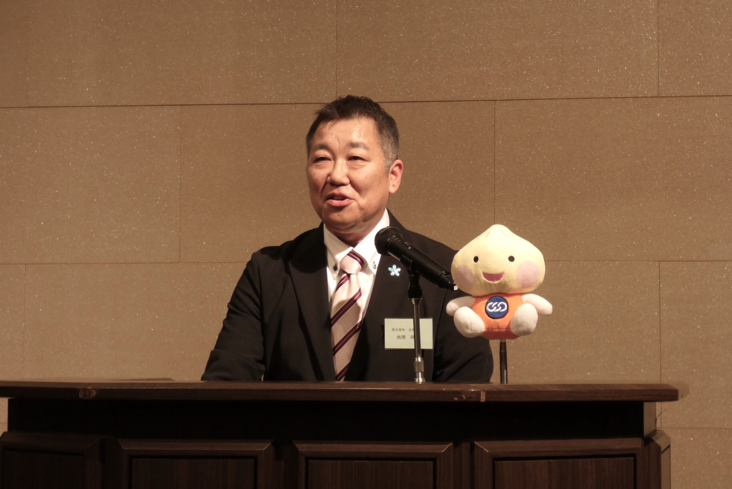 宴は森下勝彦 高知県経営者協会会長の乾杯の音頭ではじまり、会場は一斉に歓喜の声に包まれた。